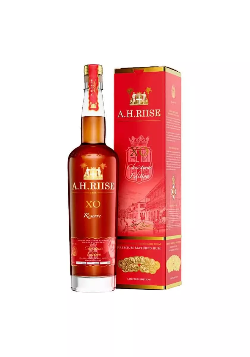 Après plus d’un siècle et demi, la marque A.H. Riise est devenue un acteur emblématique du monde du rhum, une référence incontestée. La cuvée XO Christmas est le résultat d’un assemblage de différents crus vieillis pendant 20 ans en fûts de chêne, qui a ensuite bénéficié d’une finition supplémentaire pendant un an en fûts de Sherry Pedro Ximenez, lui conférant sa spécificité. Des arômes délicieux de clou de girofle, de cannelle et de pain d’épices se dégagent de cette cuvée XO Christmas.