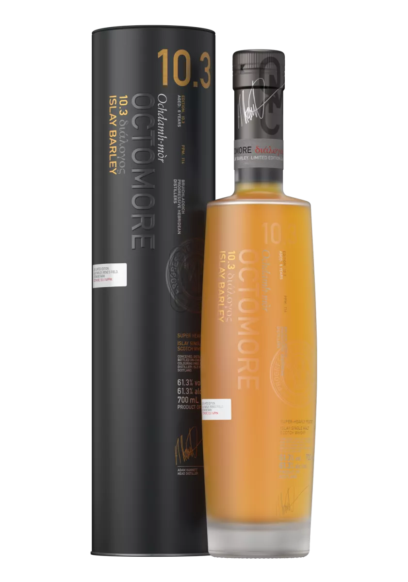 Octomore 10.3 a été embouteillé à la distillerie, sans ajout ni filtration à froid.