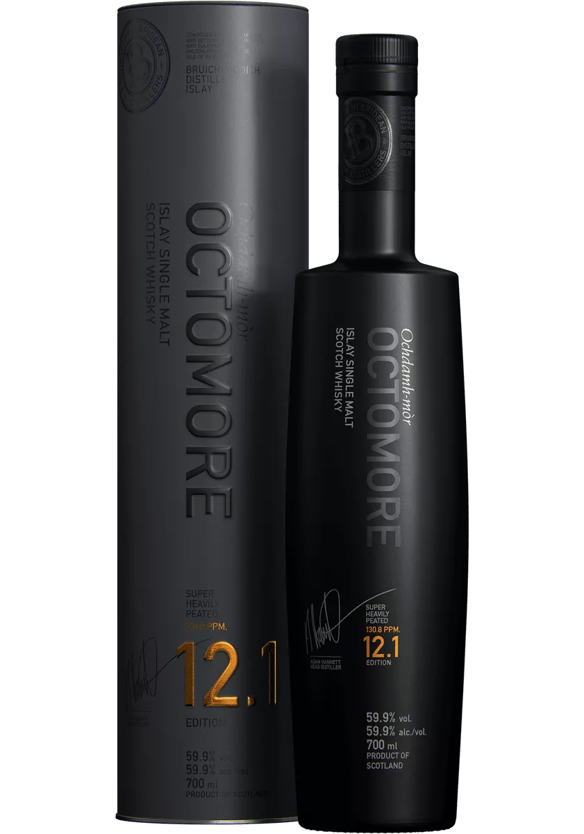 Orge 100% d’Islay de la ferme Octomore. Arômes: Tourbe, zeste de citron, chocolat iodé. L’un des single malts les plus tourbés au monde (130.8 ppm) et entièrement élaboré sur l’île d’Islay. Millésime 2015 puis vieilli 5 ans en fûts de whiskey américain de 1er remplissage. Non filtré à froid.