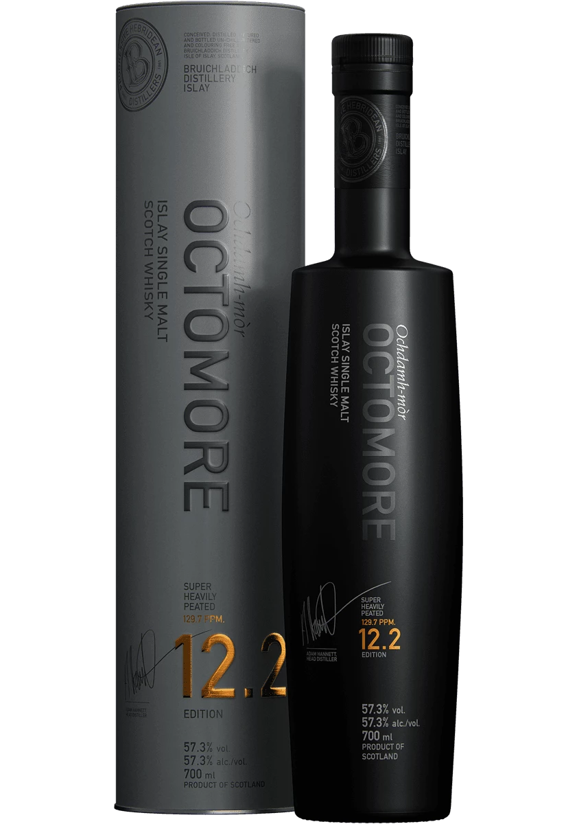 La sĂ©rie 12.2 Octomore est consacrĂ©e Ă lâexploration du fĂ»t. LâĂ©dition 12.2 met en valeur lâinfluence du fĂ»t de Sauternes : les notes douces et sucrĂ©es (melon, pĂȘche, chĂšvrefeuille, noix de coco) viennent contre-balancer le fumĂ© de la tourbe.