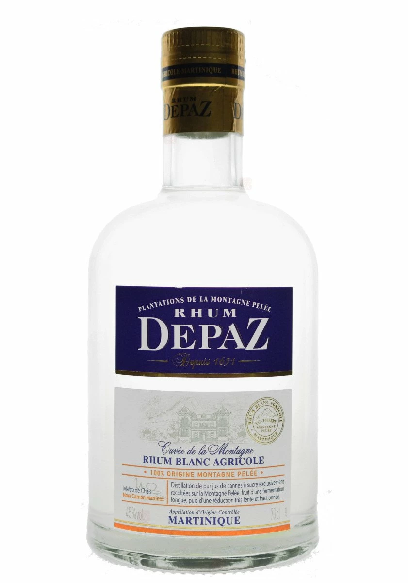Le rhum blanc Depaz Cuvée de la Montagne provient de la distillation pur jus de cannes à sucre exclusivement récoltées sur les flancs du célèbre volcan de la Montagne Pelée.