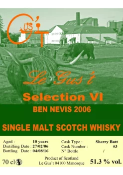 Cette distillerie, ses whiskies et la convivialité de ceux qui y travaillent, font que les Gus’t y sont attachés. Alors quand, en dégustant de nombreux fûts, ils n’arrivent pas à choisir en deux whiskies, ils décident d’embouteiller les 2.