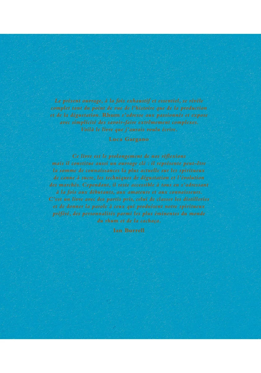 « Ce livre est un prolongement de nos réflexions mais il constitue aussi un ouvrage clé : il représente peut-être la somme de connaissances la plus actuelle sur les spiritueux de canne à sucre, les techniques de dégustation et l’évolution des marchés. Cependant, il reste accessible à tous en s’adressant à la fois aux débutants, aux amateurs et aux connaisseurs. C’est un livre avec des partis pris, celui de classer les distilleries et de donner la parole à ceux qui produisent notre spiritueux préféré, des personnalités parmi les plus éminentes du monde du rhum et de la cachaça. » Ian Burrell