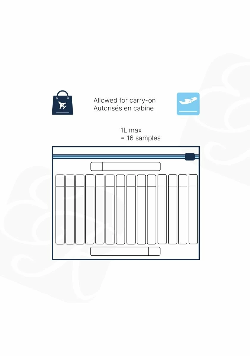 Le sample est également accepté dans vos bagages cabines et soutes, idéal pour partir en vacances avec votre cognac préféré.