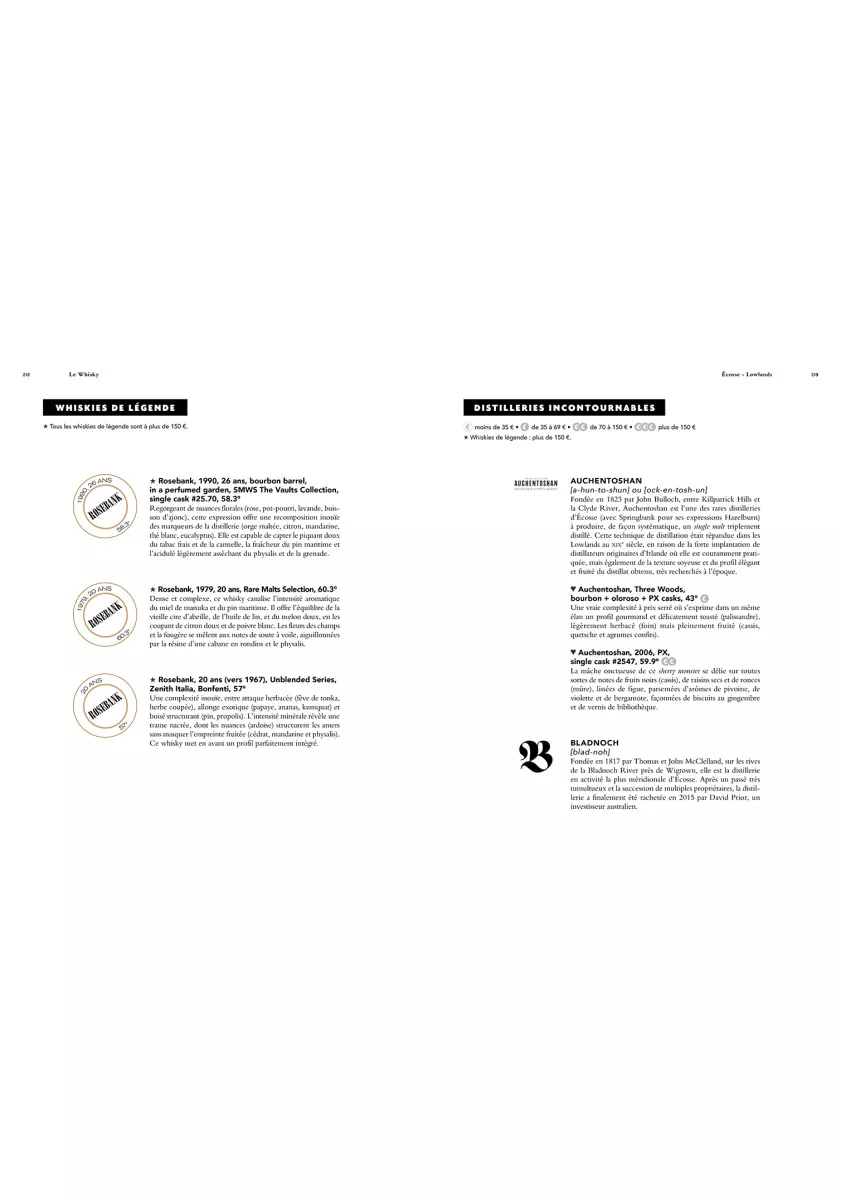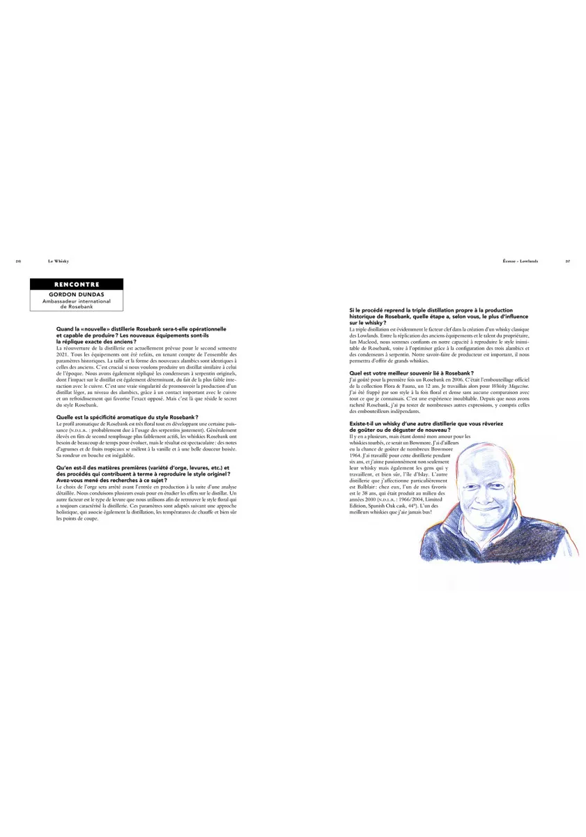 Entre conseils et coups de cœur, tous les styles de whiskys sont présentés : les blends et single malts écossais, les whiskeys américains, les pot still whiskeys irlandais, les whiskys japonais ou taïwanais. Un tour d’horizon inédit et passionnant du whisky, enrichi de rencontres : hommes et femmes des grands pays producteurs (Écosse, Irlande, Japon, États-Unis, Canada, sans oublier la France), mais aussi nouveaux acteurs du monde du whisky (Allemagne, Australie, Inde…)